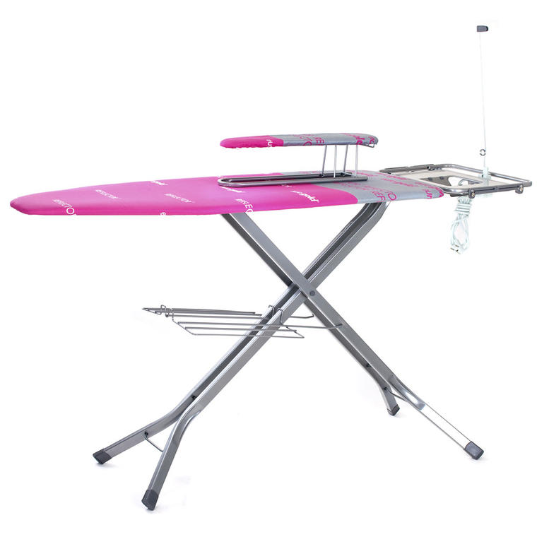 ŽEHLICÍ PRKNO PROFESSIONAL BRILANZ obsahuje bezpečnou odkládací desku a vodicí držák na šňůru.